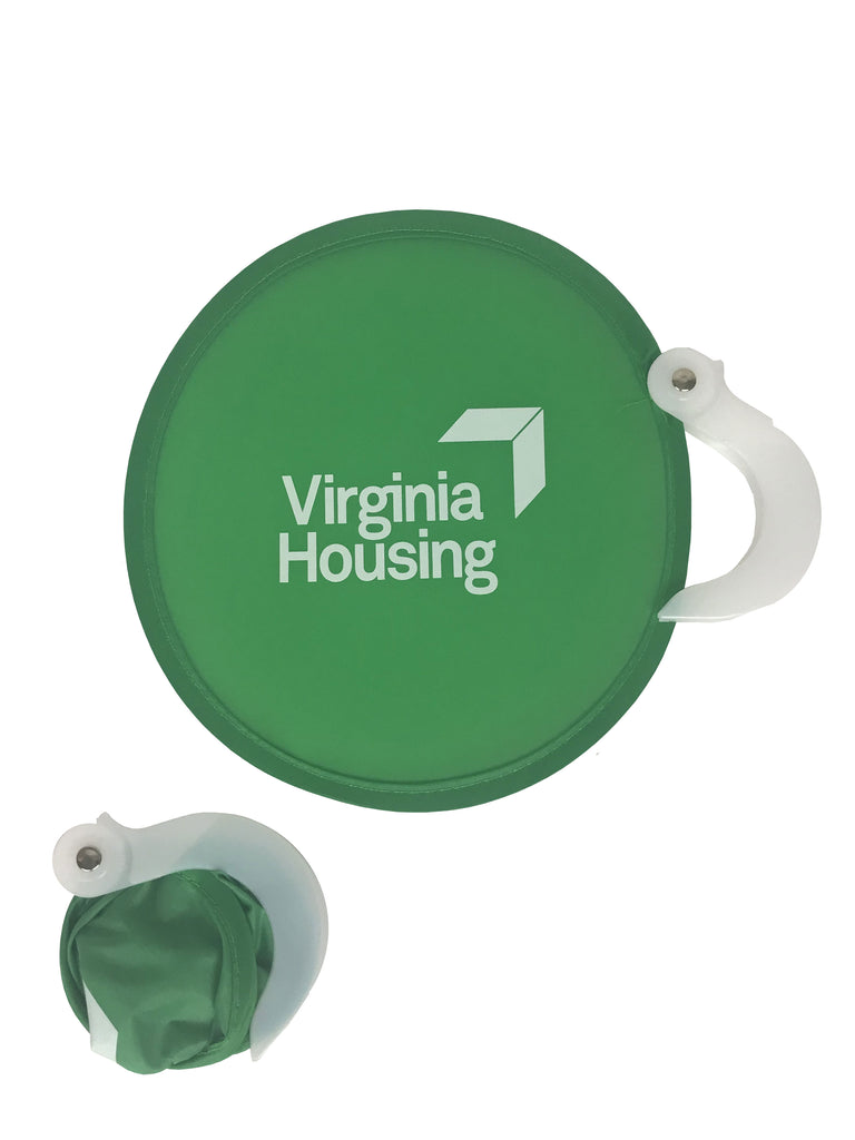 8" Diameter durable hand held fan. Twist to close for easy storage within the handle.