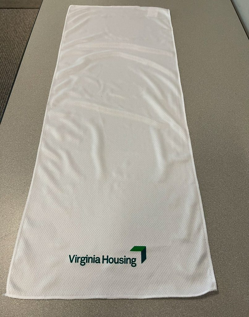 RPet Cooling Sport Towel, 12" x 32"- White w/ full color Virginia Housing logo.